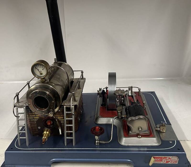 Wilesco Dampfmaschine D101 mi zwei Antriebsmodellen Kreissäge M53 und Schleifstein M5l Die Maschine wurde restauriert und neu lackiert, alles geprüft, läuft wunderbar